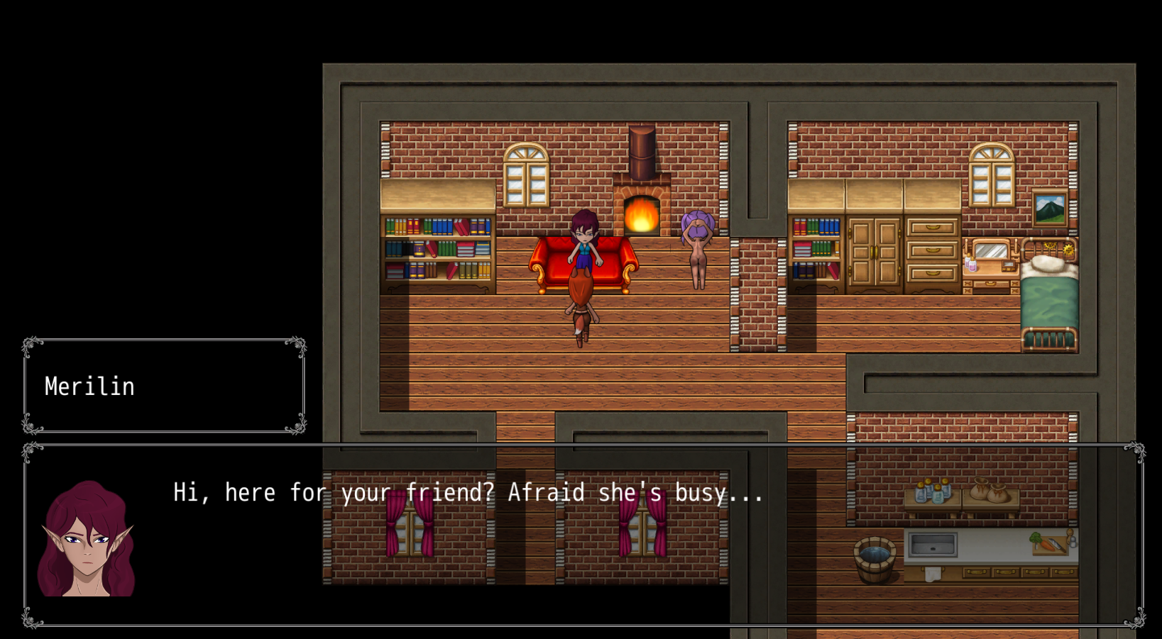 You are the young girl from a small village with a big dream - you wish to became adventurer and join the guild. Whole your village worked hard for a year to collect money for your base gear and provision. You'll start a game on the final day of preparation before your journey. But your plans will drastically change during your last night at your village...